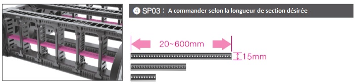Le séparateur horizontal est disponible en longueur de 20 à 600 mm par incrément de 5mm pour votre utilisation. L’utilisation combinée de séparateurs verticaux et horizontaux permet d’obtenir le meilleur compartimentage pour augmenter la durée de vie des câbles.